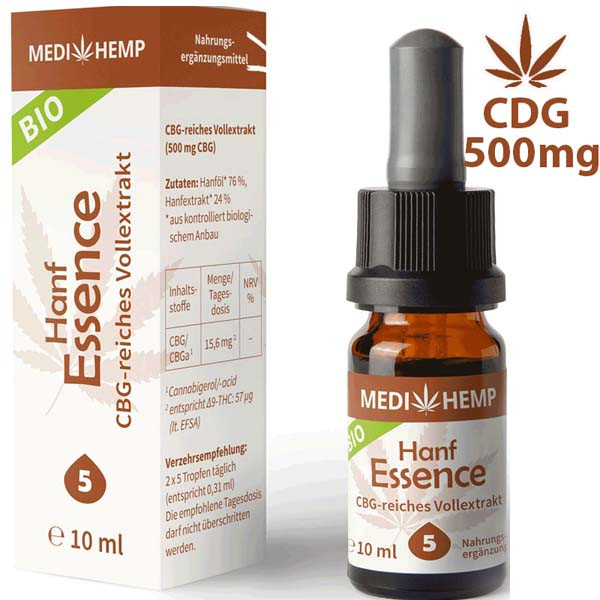 5% - 10ml - 500mg CBG/CBGa - 250-300 cseppCBG/CBGa (Cannabidiol/-acid): 4 csepp - 6 mg/napos adagnak felel meg.